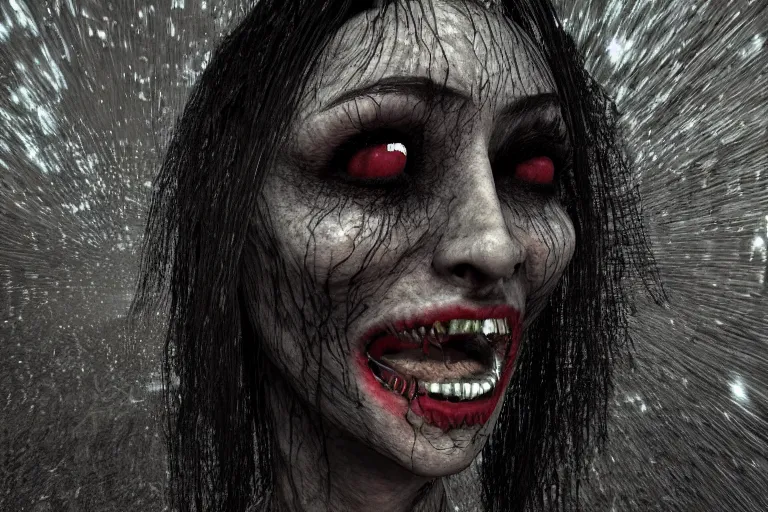 creepy ugly witch portrait stuck in the matrix, glitchy, buggy, playstation 1 graphics, low poly...Show more