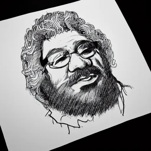 continuous single line contour - drawing of jerry garcia, pen on white paper