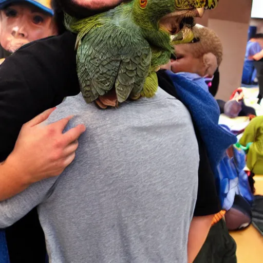 Prompt: taking a selfie with a frog fleshy mascot costume at an applebee's, cell phone photo