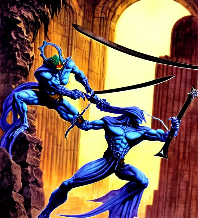 raziel from soul reaver holding the physichal sword battling against kain, with the pillars of no...Show more