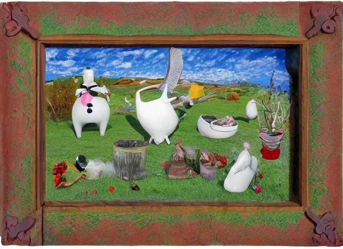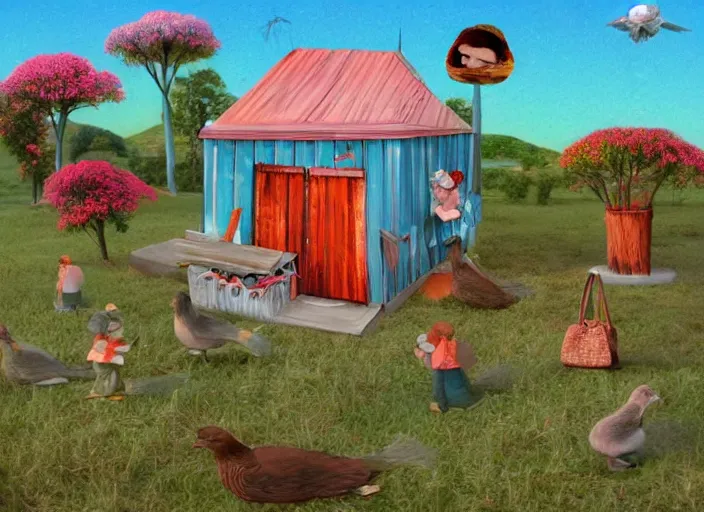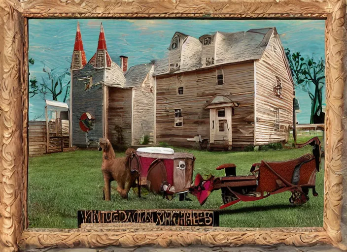 whimsical simple folk art, lowbrow, matte painting, 3 - d highly detailed, in the style of ammi phillips,