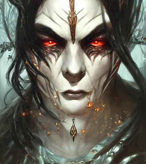 a concept art painting of a evil female half - orc sorceress, art by karol bak and mark brooks and artgerm, centered, trending on artstation