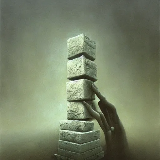 arm reaching out of thick fog, marble blocks, zdzislaw beksinski