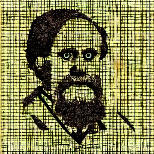 Prompt: detailed line art portrait of frierich nietzsche, inspired by egon schiele. contour lines, musicality, twirls and curves, strong personality