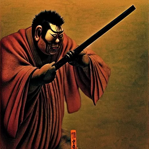 zatoichi by otto dix, junji ito, hr ginger, jan svankmeyer, beksinski, claymation, hyperrealistic, aesthetic, masterpiece