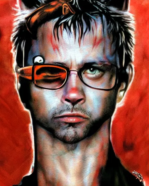 cat in fight club, cat tyler durden, airbrush, drew struzan illustration art, key art, movie poster