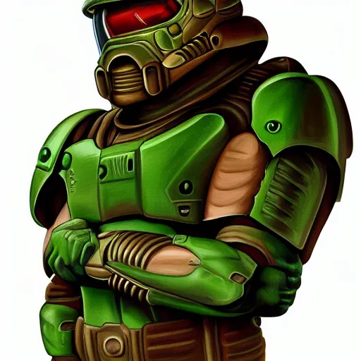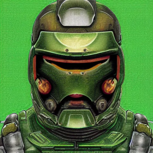 portrait of doomguy, highly detailed, centered, digital painting