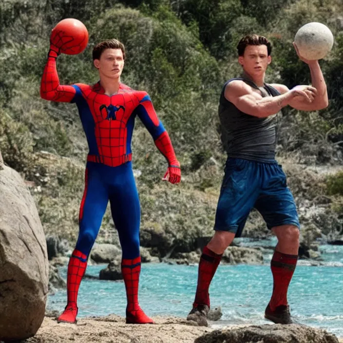 tom holland with the body of the rock.