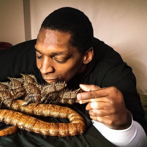 john coltrane snuggling a giant mealworm
