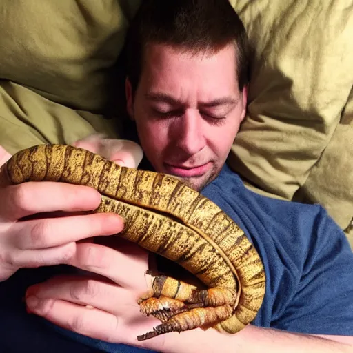 john coltrane snuggling one giant mealworm in bed