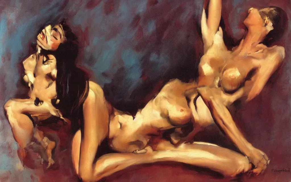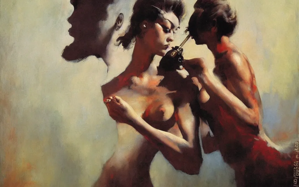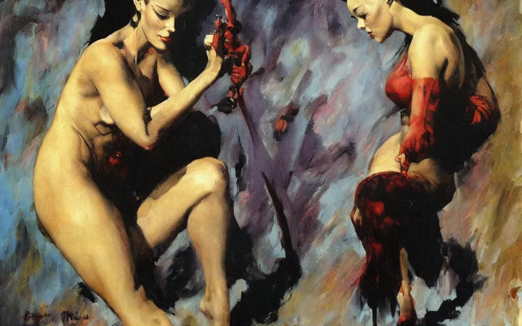 frank frazetta paints his muse, eleanor frazetta, oilpainting, smooth,
