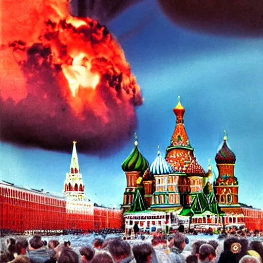 huge nuclear explosion photo, red square moscow, photorealistic, detailed photography, masterpiece