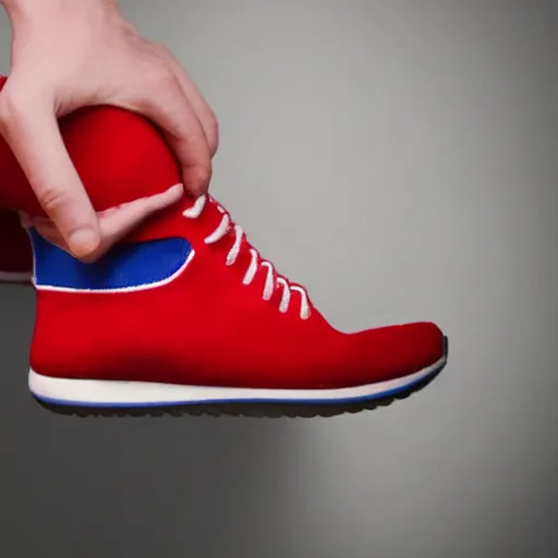 sonic the hedgehog holding up foot wearing red shoe, mouldy stinky sweaty dank moist backlit rim lighting professional foot photography