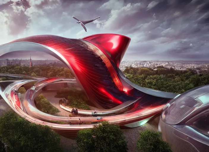 futuristic france, scifi, machines, artificial intelligence, ribbon chapel, ultra realistic, cine...Show more