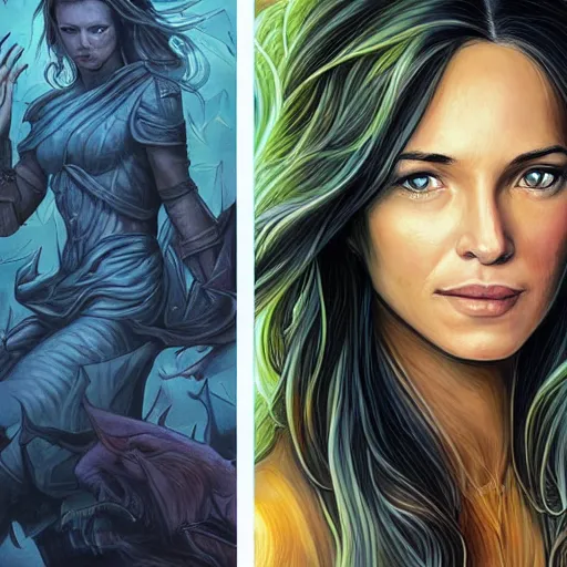 Prompt: Emma Watson as a Warcraft night elf wizard, Hearthstone key art, Blizzard concept art by Dave Greco