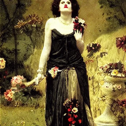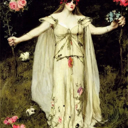 persephone as goddess of death, flower dress, by alfred stevens