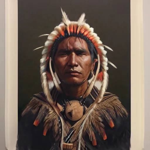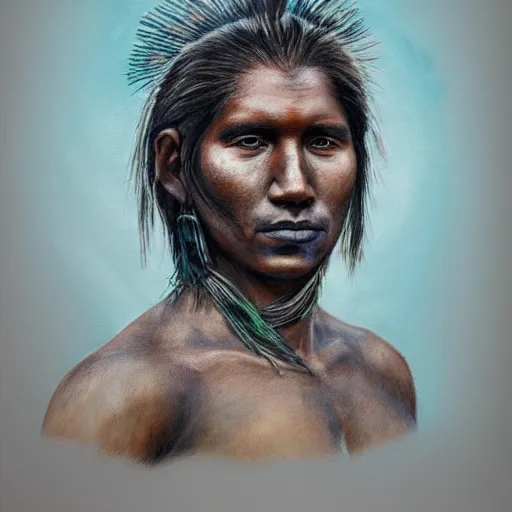 a male indigenous warrior portrait, by marco mazzoni