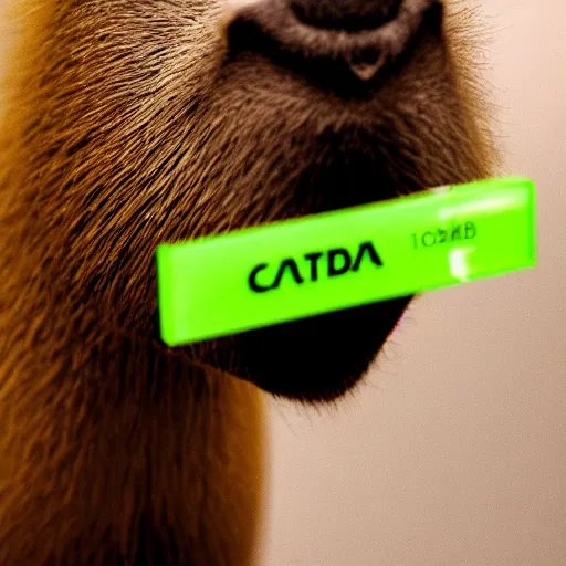 a beautiful photo of a capybara chews on a nvidia gpu, eats an rtx 1 0 8 0 graphic card, wildlife...Show more