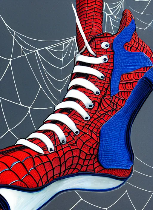 an anthropomorphic cyberpunk basketball sneaker of spider man by sandra chevrier,, cybernetics, 4...Show more