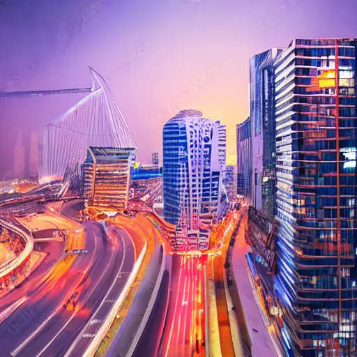 nigeria lagos night scene big city view future realistic style with futuristic buildings and future cars