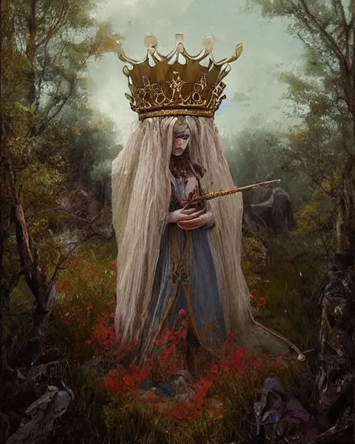 grimes!! [ in a queens crown ]!!, wearing royal attire!!, digital art, d & d, tarot card, wiccan, oil painting, illustrated by greg rutkowski, max hay, rajmund kanelba, cgsociety contest winner
