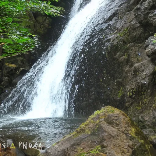Prompt: A hidden waterfall, tucked away in a secluded forest, with the sound of the water cascading down the rocks, in a peaceful and calming style.