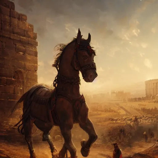 trojan horse at the gate of troy, art by greg rutkowski, siege, 4 k, - n 4
