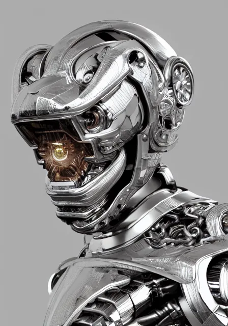 potrait hyper detail portrait of a mechanical ape cyborg, silver, sci fi, full body, complex 3 d...Show more