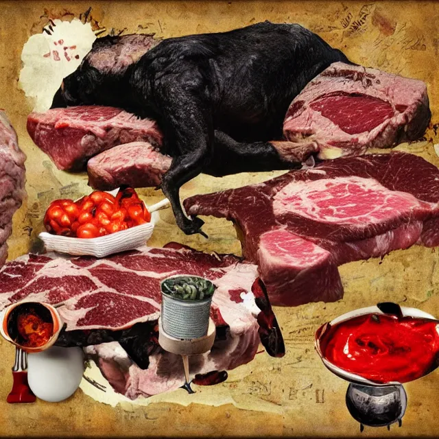 Prompt: meat cycle, beef bike, flesh bicycle, glisten, oily, dripping, mechanical, professional food photography, high gloss magazine spread,