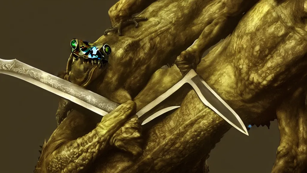 a greatsword made out of frogs, cinematic, 2 0 2 2, highly detailed, dramatic lighting
