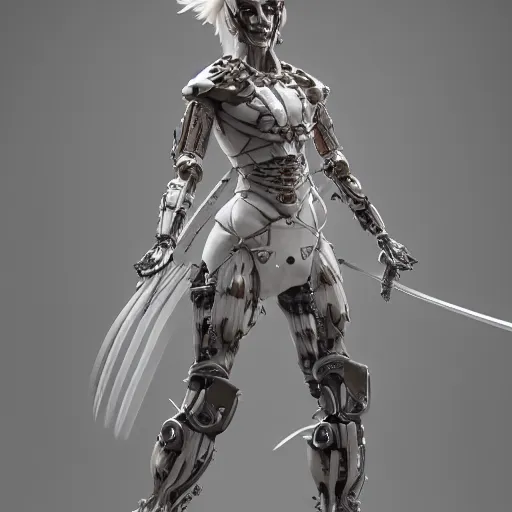 gorgeous mutant female samurai with full warrior armor, 3 d render, futuristic biomechanical, porcelain ivory mask, hyper realistic, cinematic, octane render, 8 k