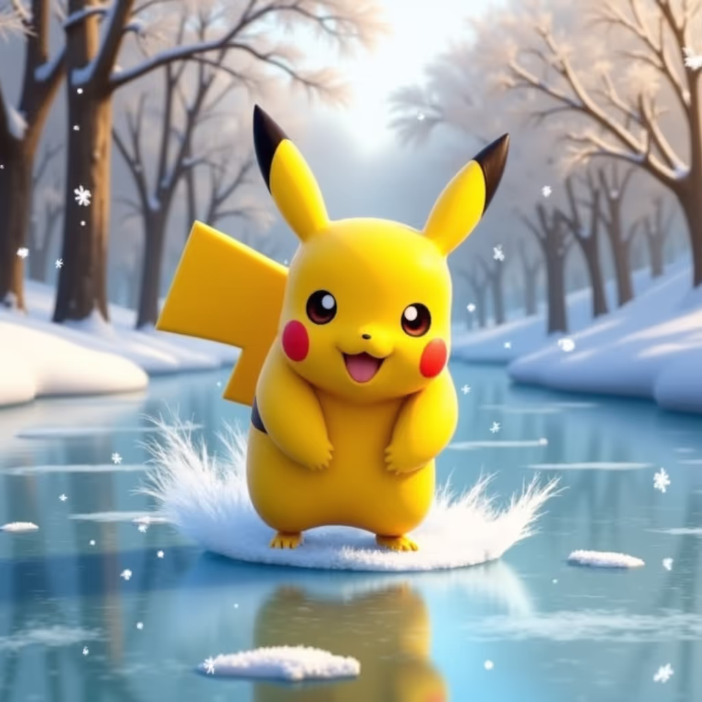 Pikachu in Winter: Imagine Pikachu in a snowy landscape, building a snowman and having a snowball fight with friends.