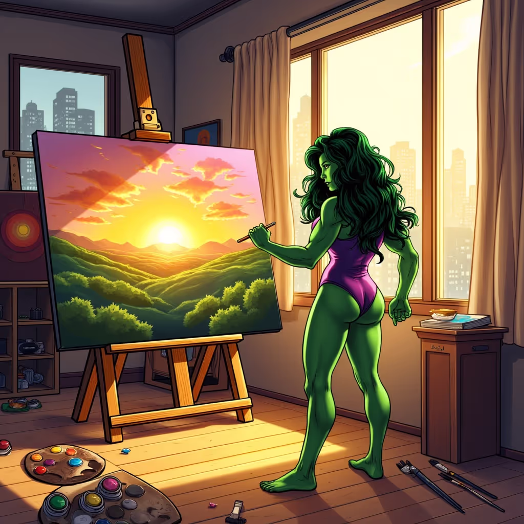 She-Hulk in a Painting Class: See She-Hulk creating a masterpiece on canvas in an art studio.