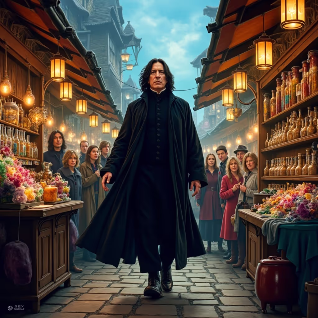 Snape as a Detective: Picture Snape in a trench coat, investigating a mysterious crime scene.