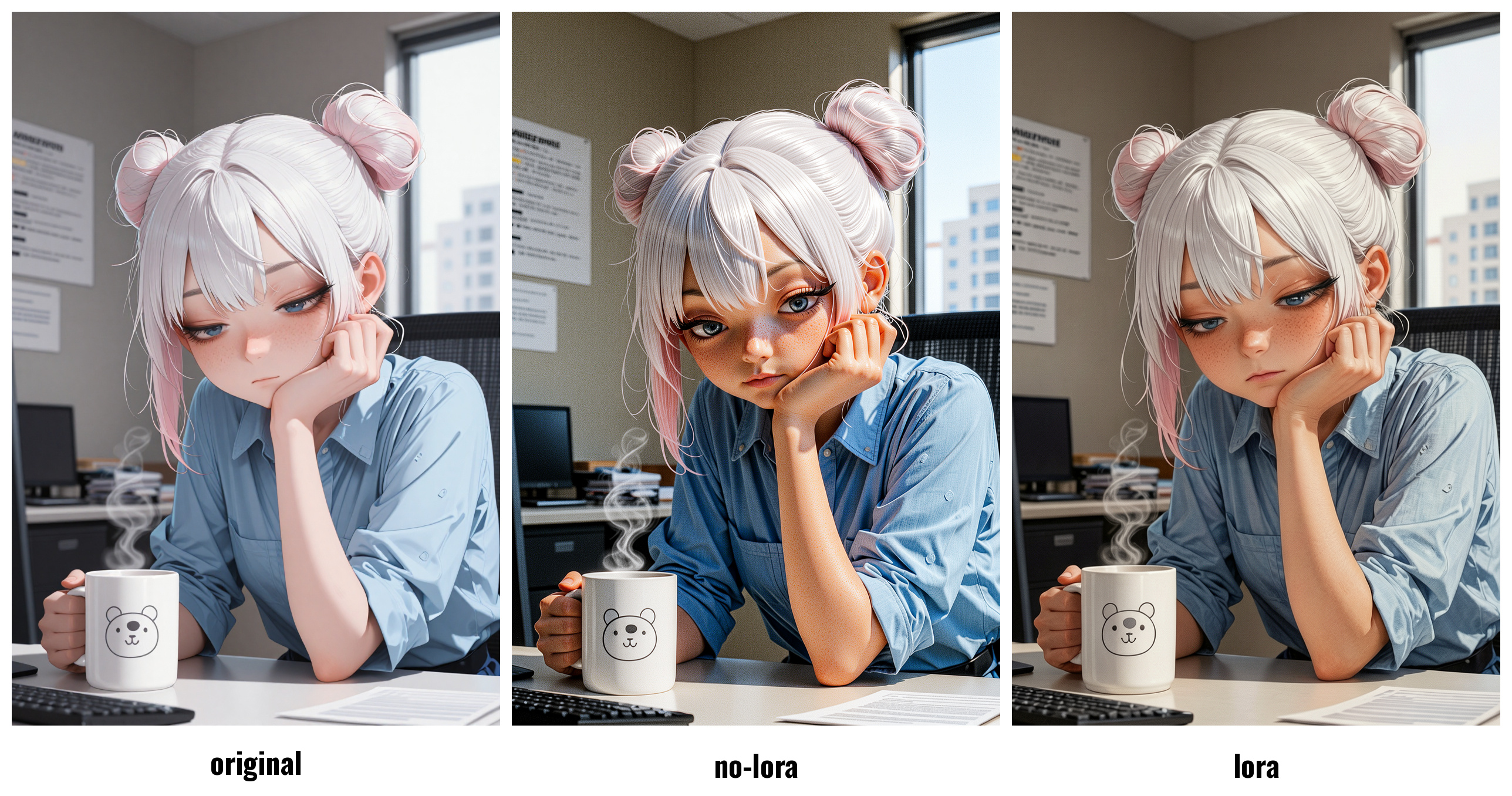 This LoRA performs very well on low detail or low resolution images and also produces excellent results on high quality images as a detail enhancer. It is also effective at preserving the original details of the source image.