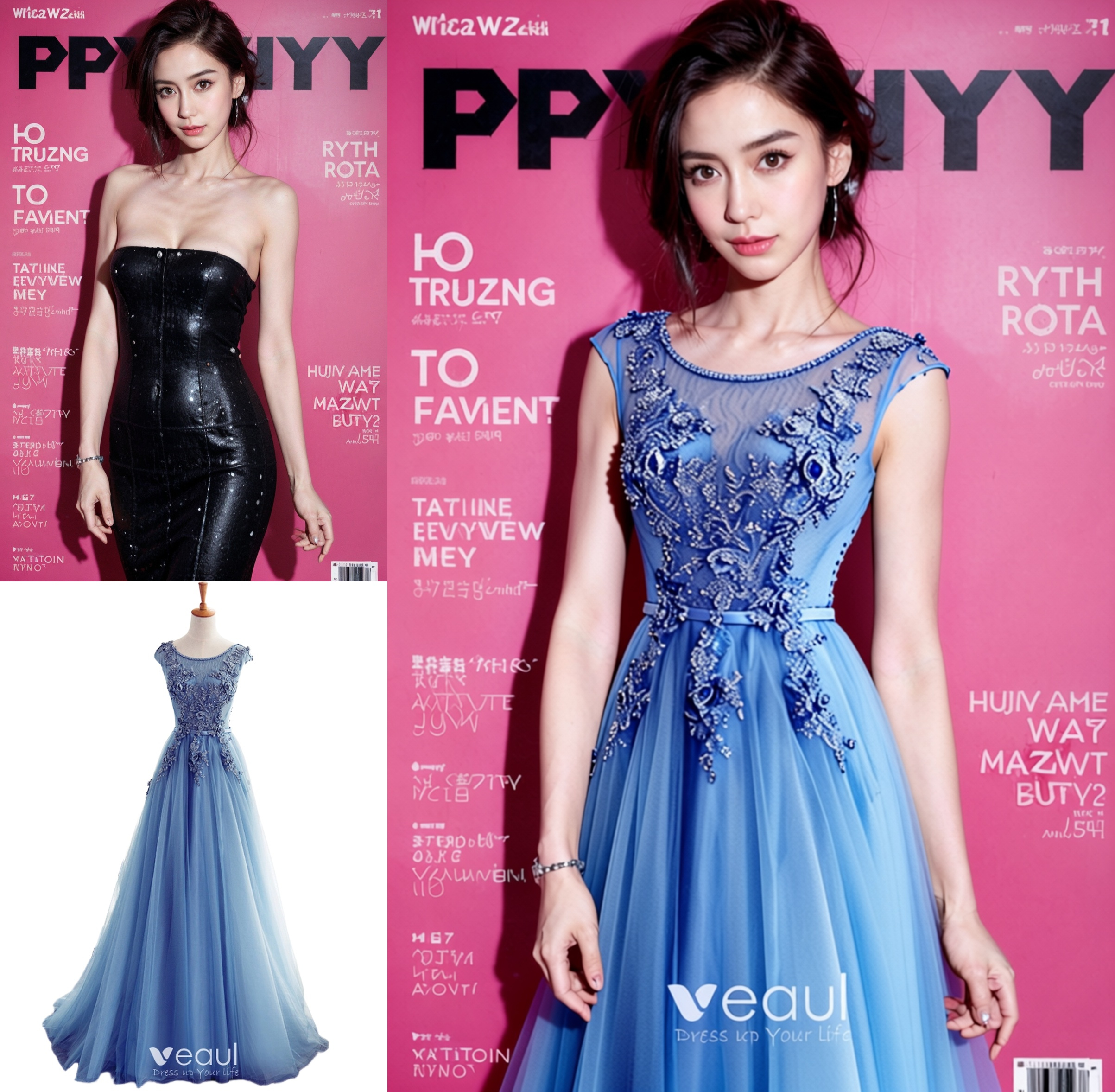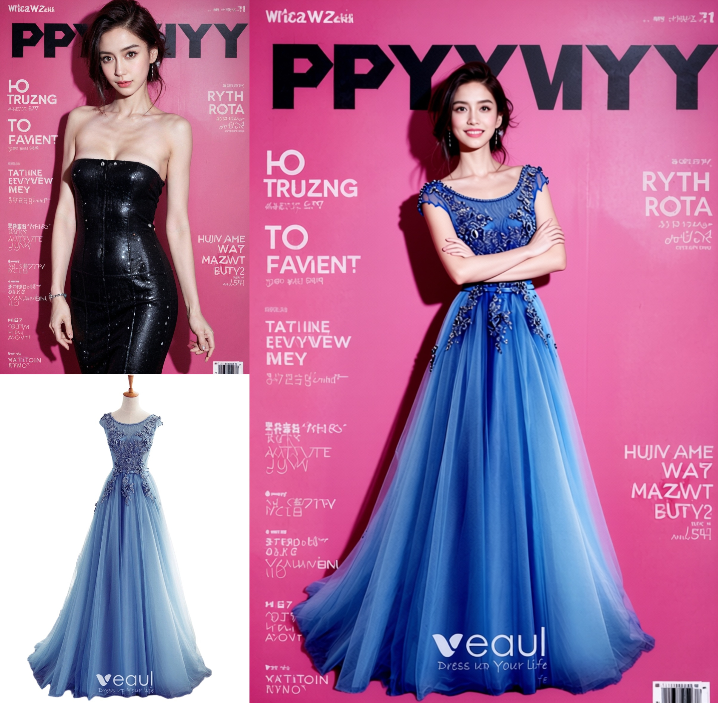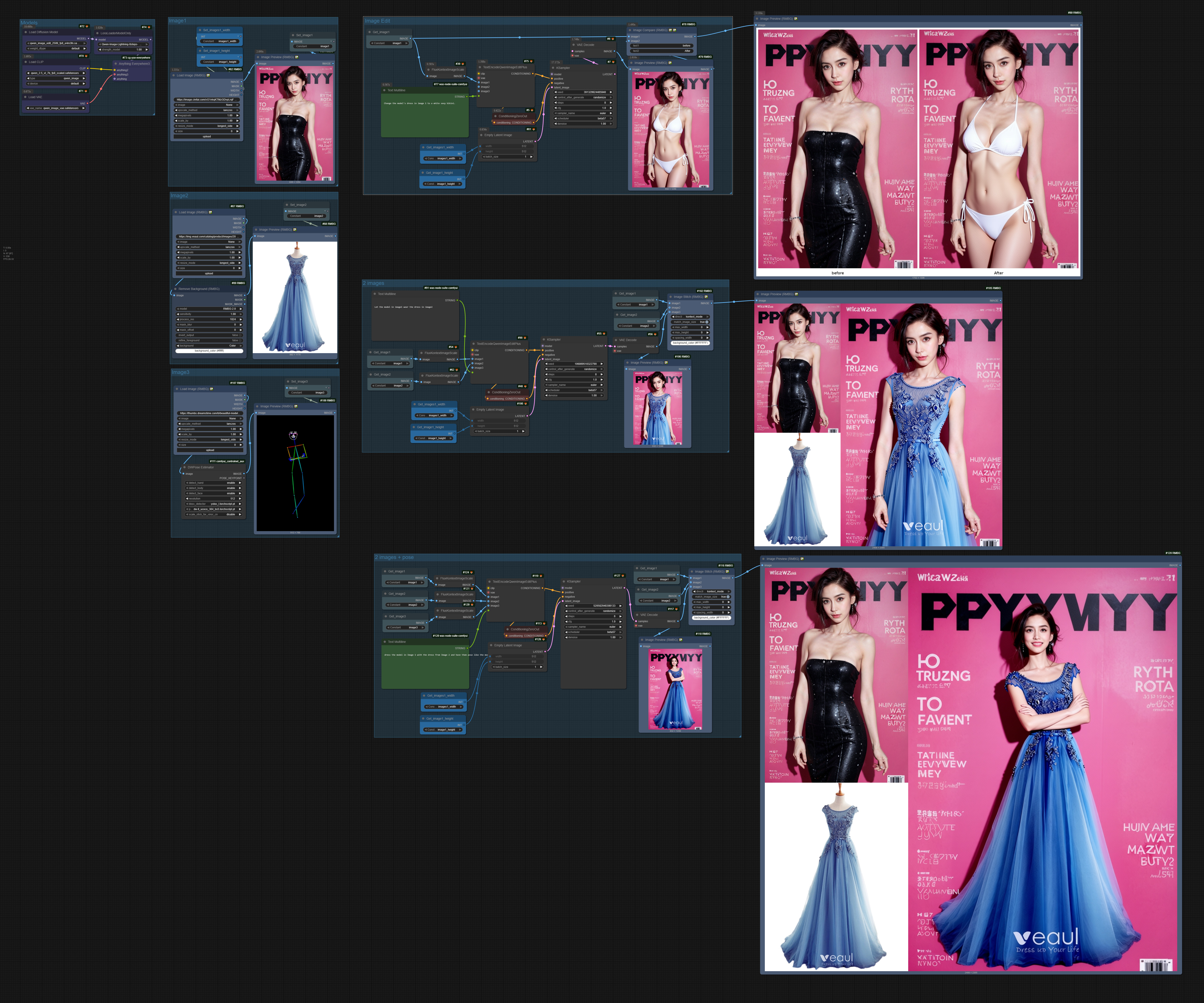 just a simple testing worflow, find 3 random image online.( magaine cover, a dress and the pose image)