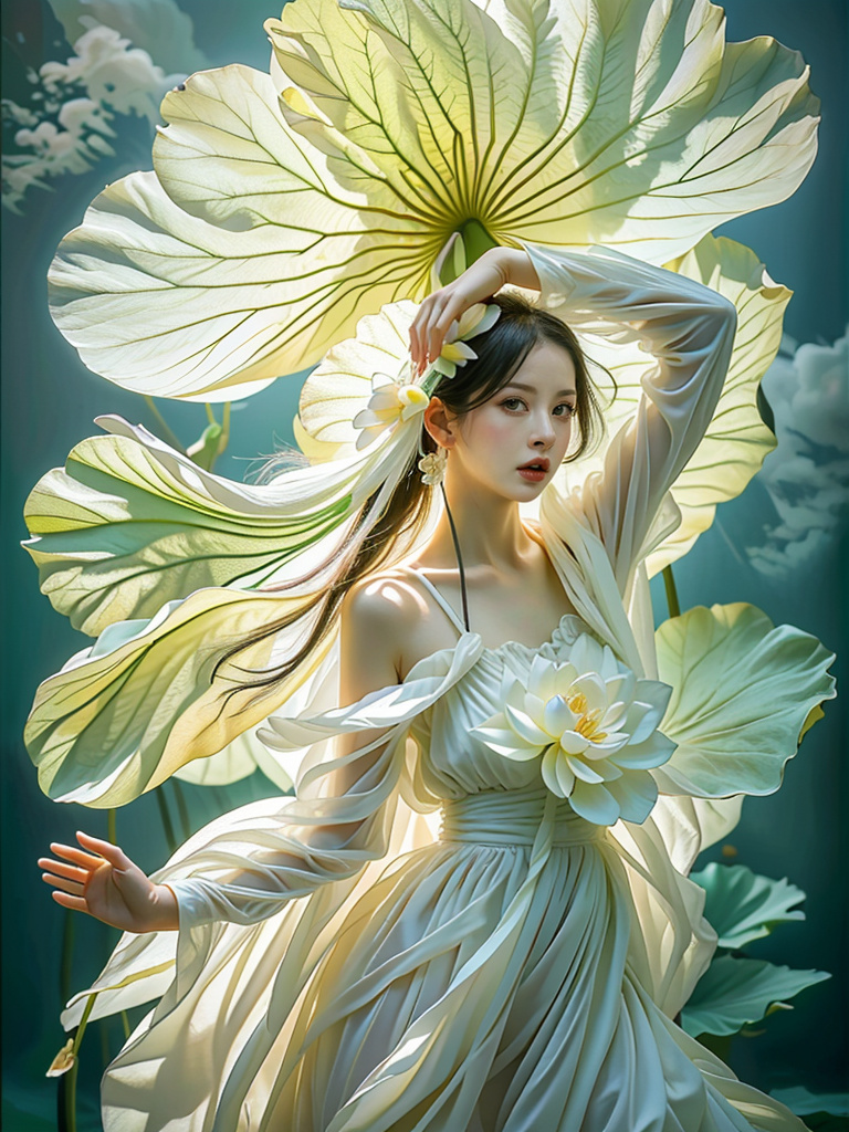 Lienhua Giant Lotus Flower Eastern Fantasy Beauty Workflow