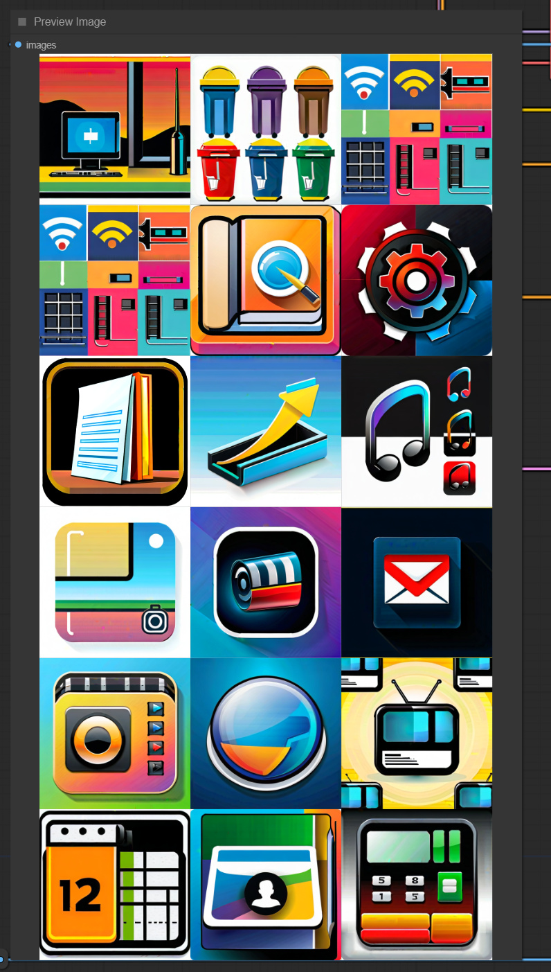 This workflow creates icons from text inputs using my new custom node 'saveAs' to save your generated files in different formats. The icons include: This PC (Computer), Recycle Bin, Control Panel, Network, File Explorer, Settings, Documents, Downloads, Music, Pictures, Videos, Mail, Media Player (e.g., Windows Media Player), Web Browser (e.g., Internet Explorer / Microsoft Edge), and Video (e.g., Movies & TV).
