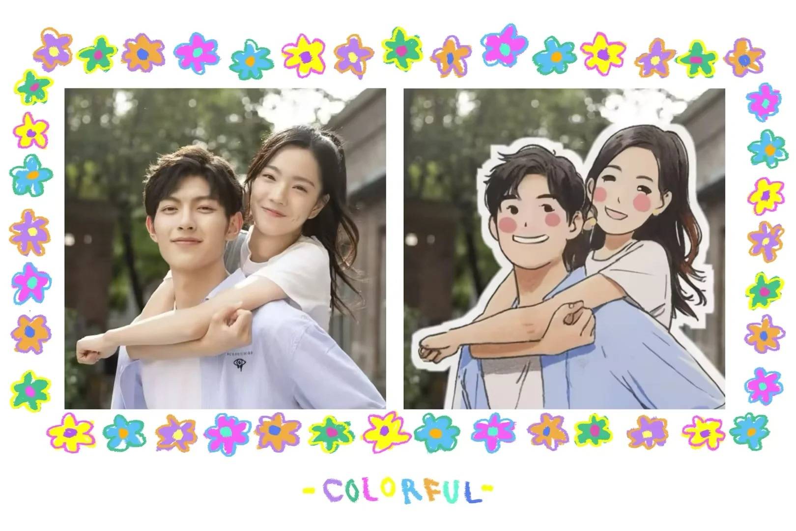 Couple photos are converted into hand-painted dot-eye style, supporting up to 2 people