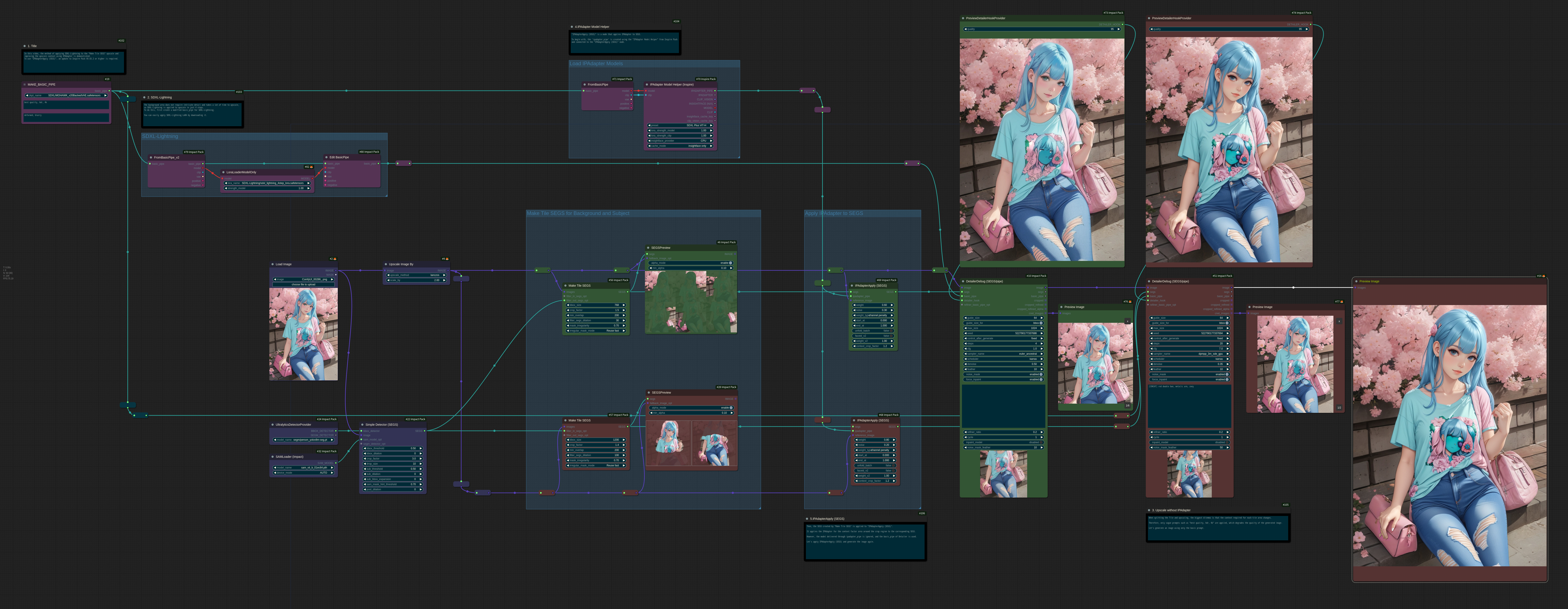 While using Make Tile SEGS for upscaling, the background is rapidly upscaled using SDXL-Lightning, while characters are carefully upscaled using regular SDXL.