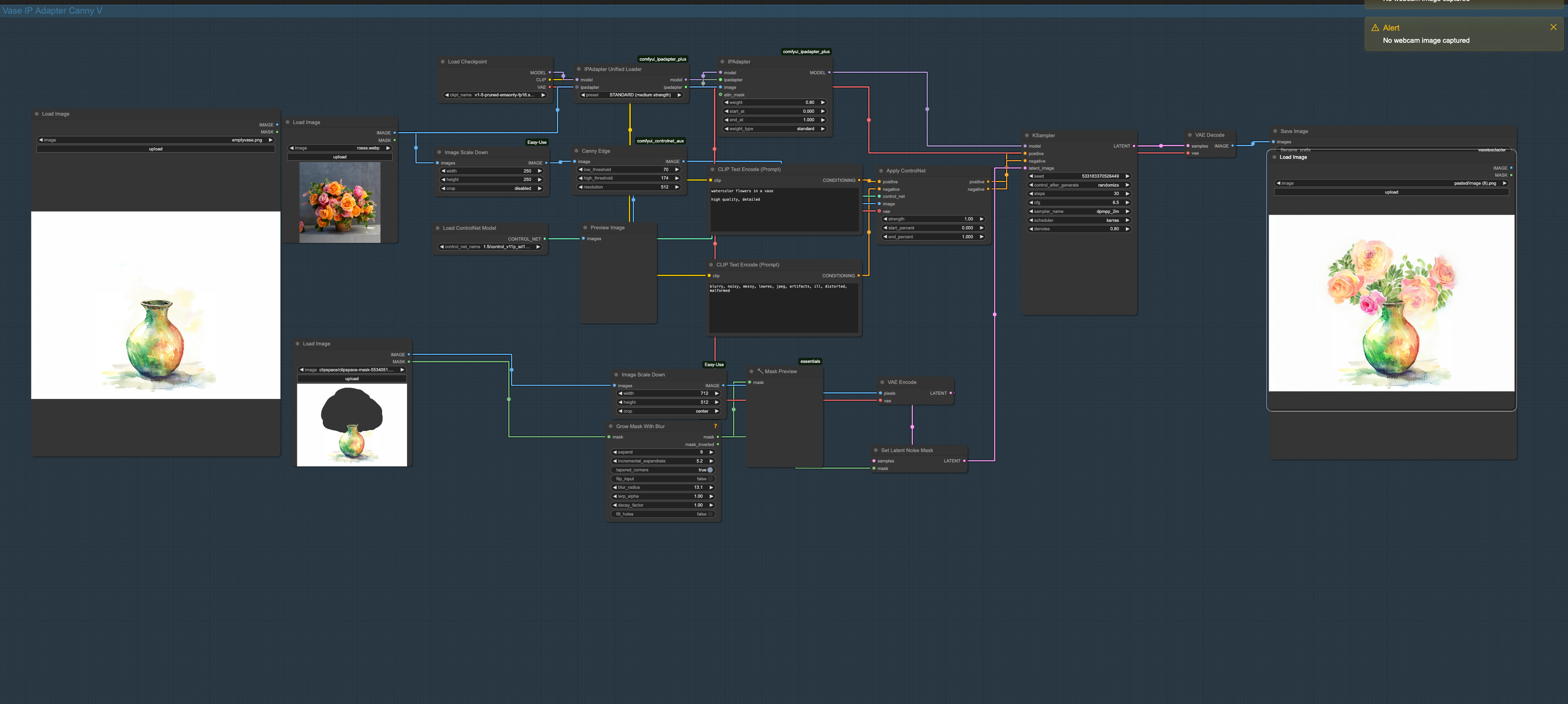 Educational Workflow: Exploring ControlNet Options with Watercolor Flowers in a Vase