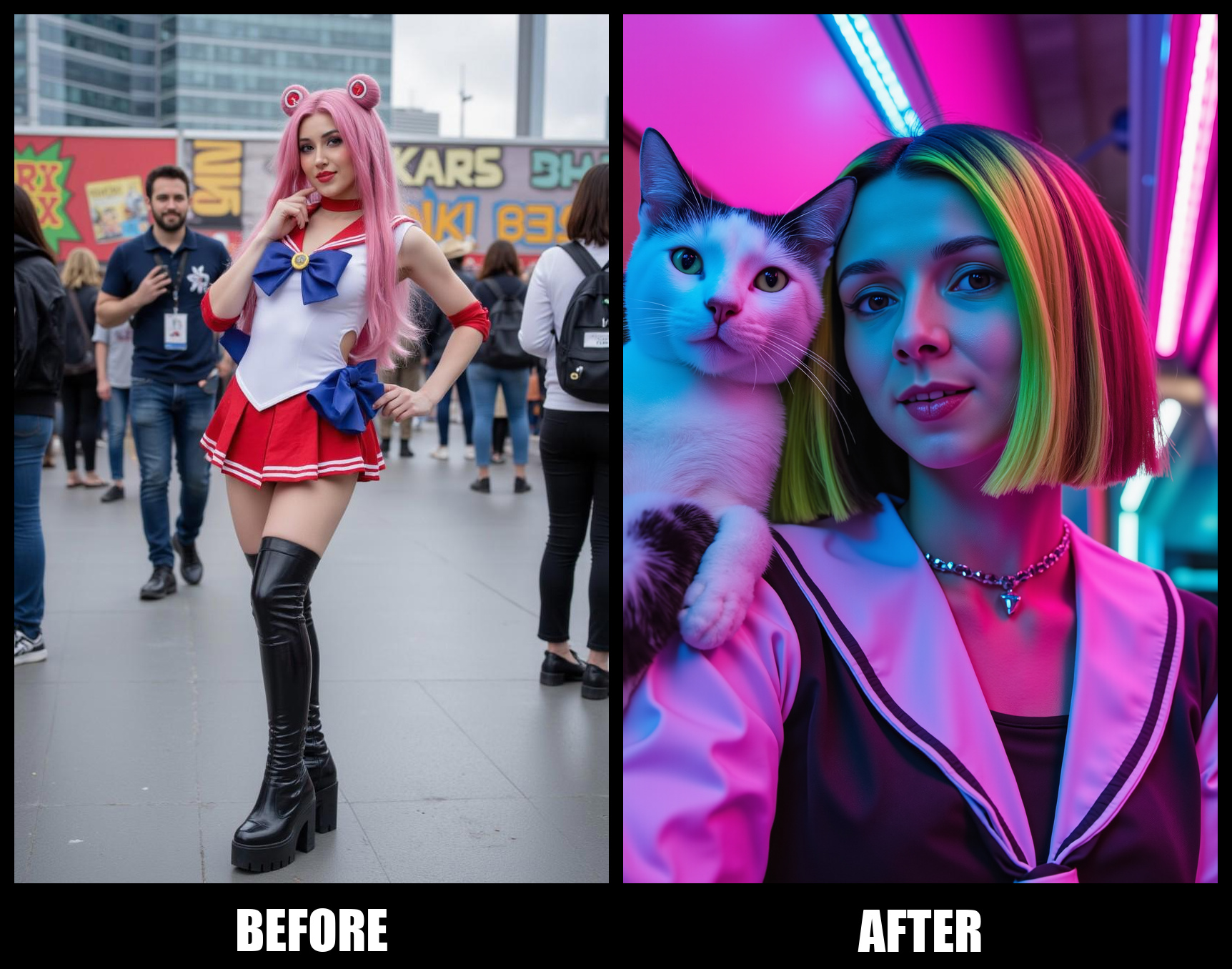 Drawing inspiration from the PromptGeek Book, this workflow leverages advanced deep detail manipulation to excel in mimicking photographs and transforming key elements across various subjects. Whether you're altering faces, hands, or clothing, or fine-tuning intricate details such as lighting, ISO, or camera angles, this workflow elevates AI-generated art to new heights, creating a mesmerizing “ghost clone” effect.