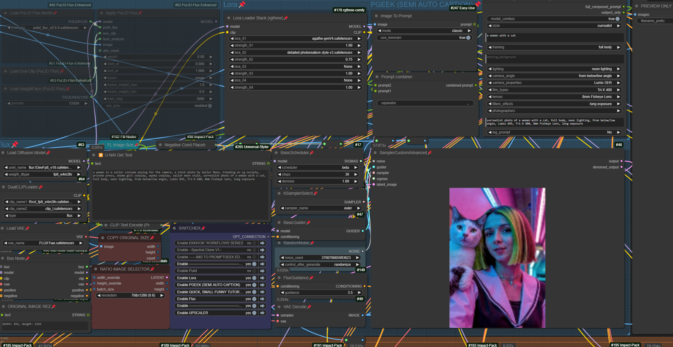 - Model Switcher: Instantly toggle between LoRA models and PulidFlux models, or blend both for unparalleled control over image conditioning and styling.