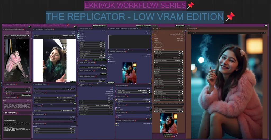 The Replicator GGUF Q4 (PULID + Background) - Low VRAM Edition