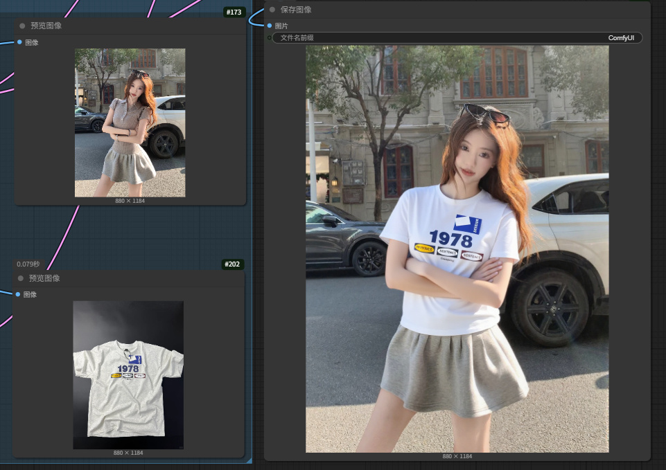 - 准备两张图片,底图和目标换装衣服图片,换装图需要是纯衣服的图片,最好背景干净,可以加个抠图节点