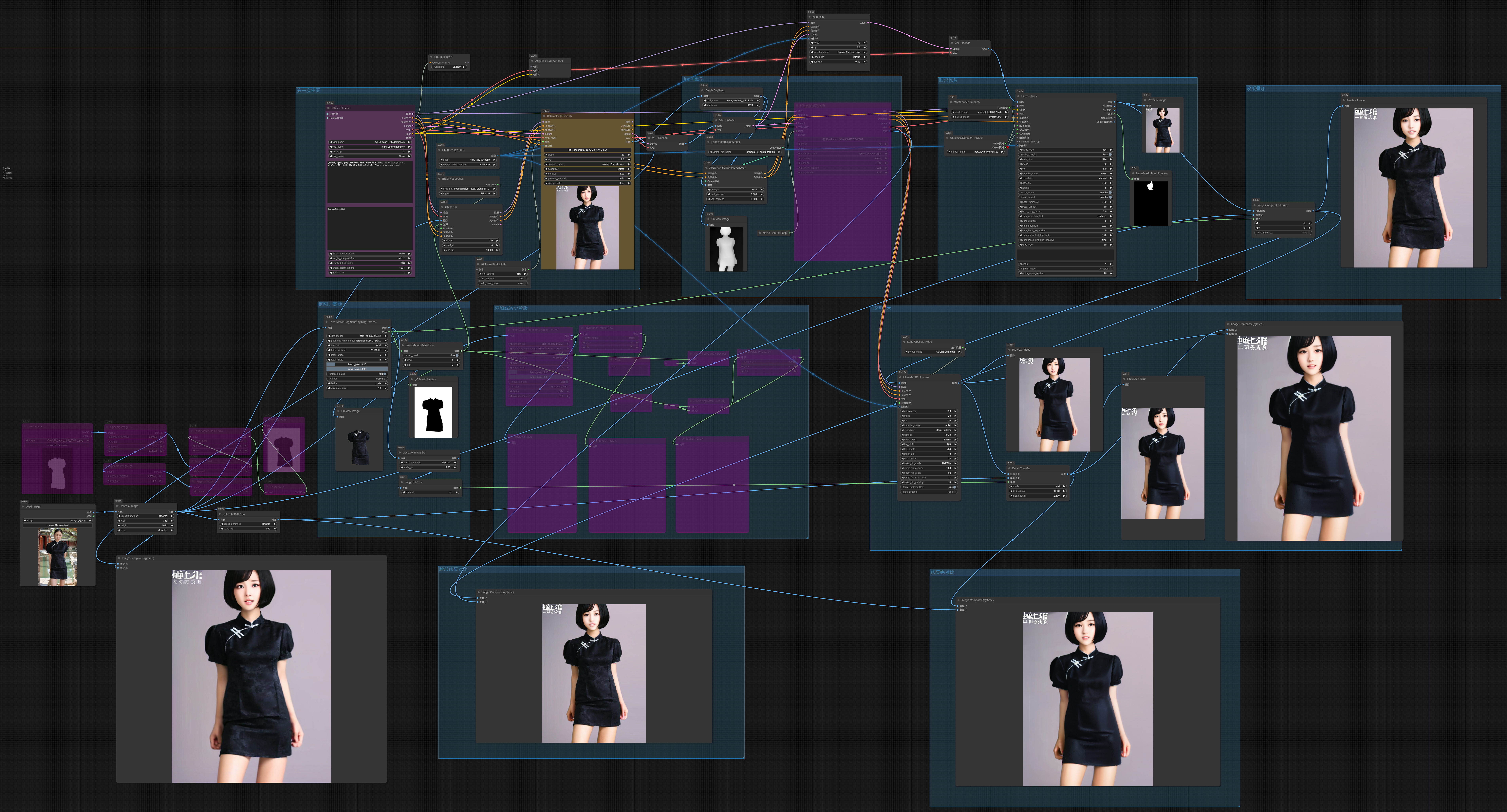 Change the model image according to the clothes.Sam+Brushnet+depth controlnet+face detailer+imagecompositeMasked+ultimate sd upscale+detailtransfer