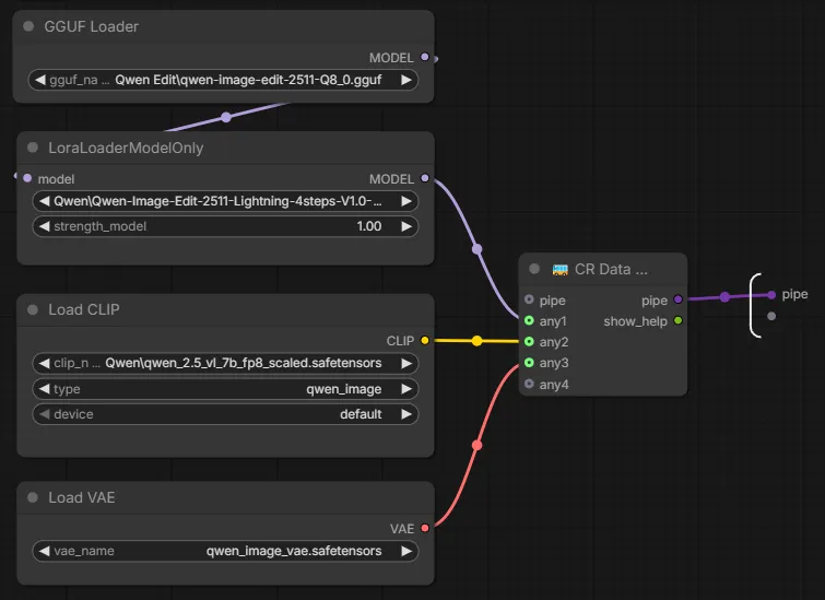 - Vision/CLIP: Qwen 2.5 VL (fp8 scaled) combined with Qwen Image VAE.