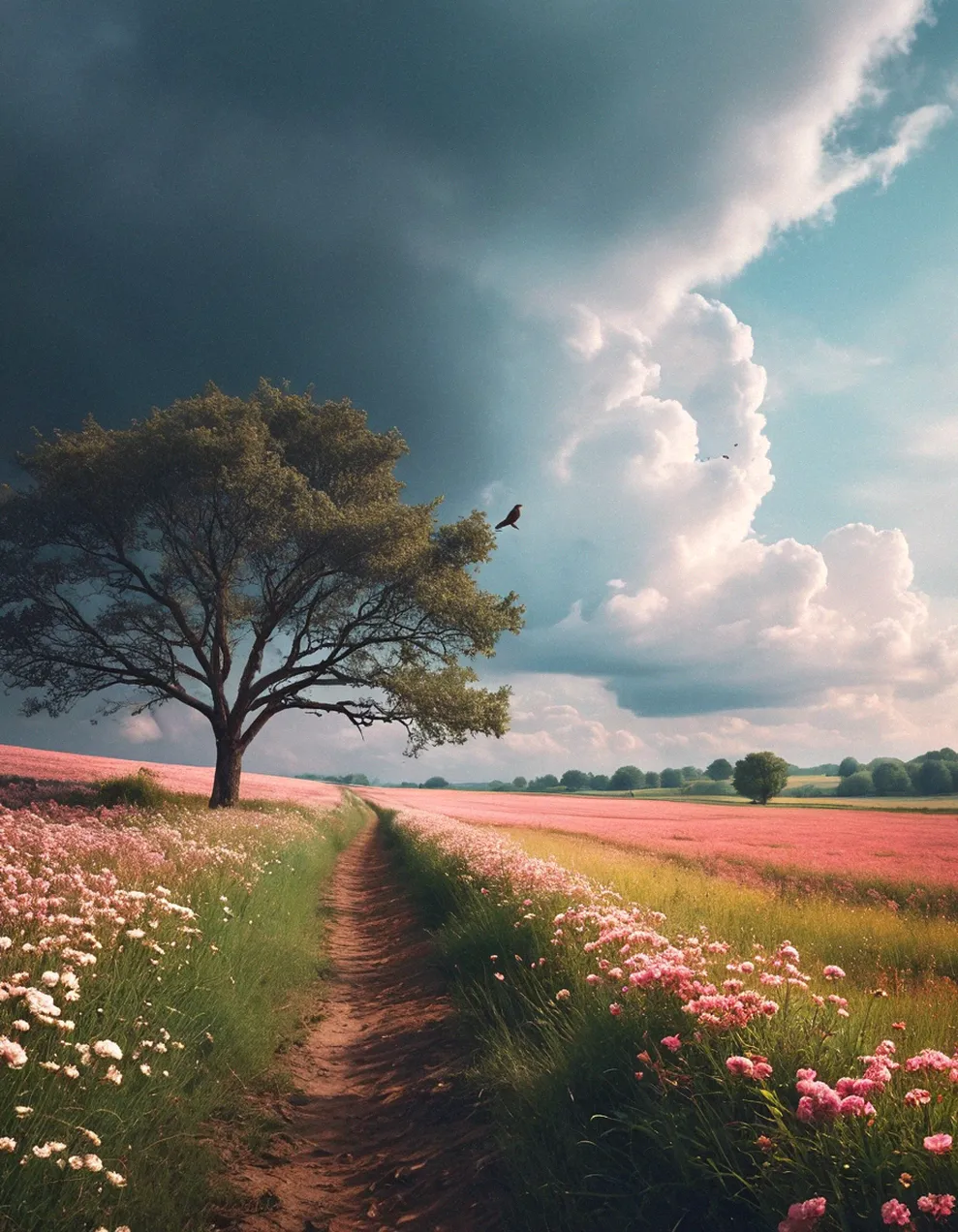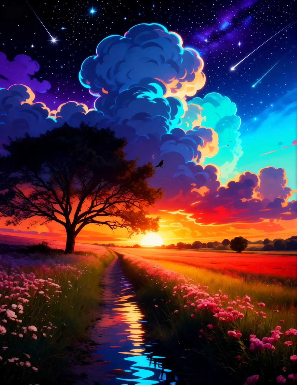 Turn a landscape photo into an artistic photo with a fantasy and anime style.