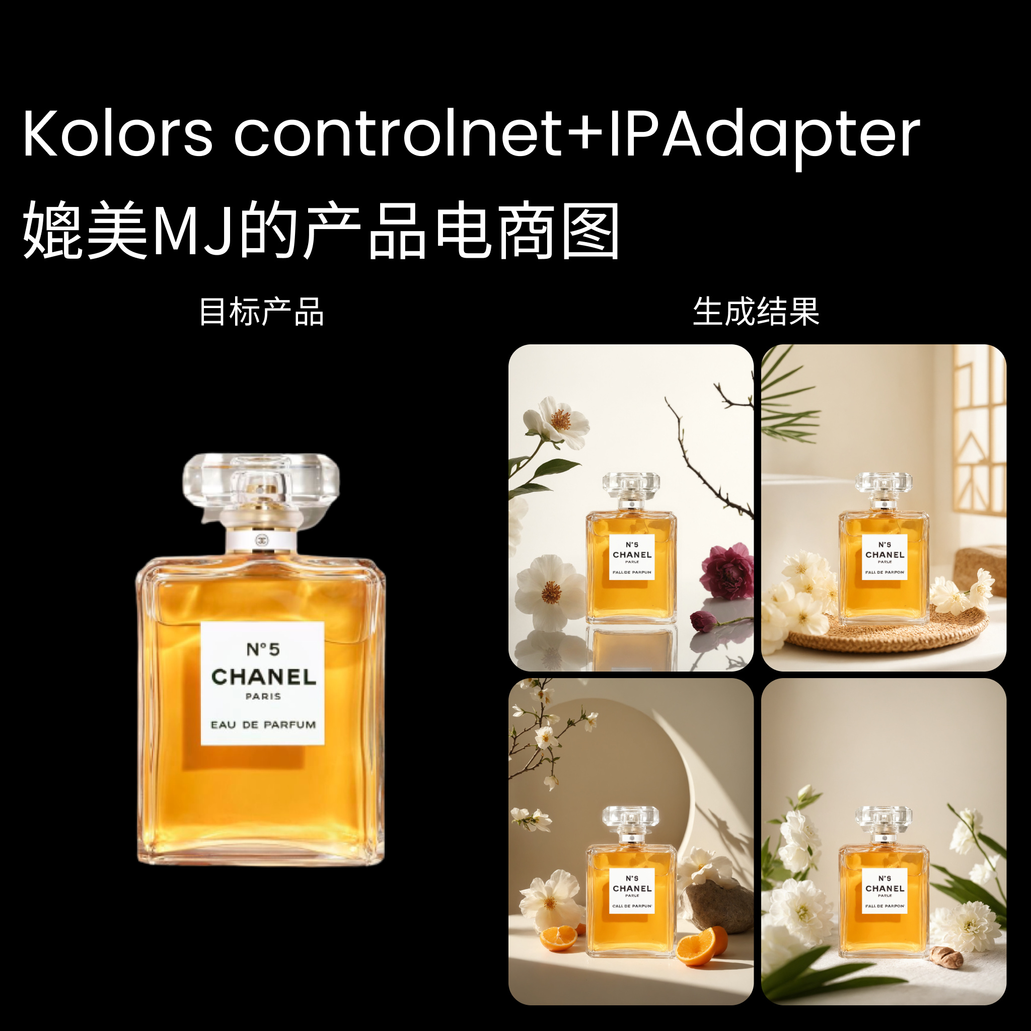 利用Kolors controlnet控制产品形状生成,再进行产品与生成图片的二次处理与合成。