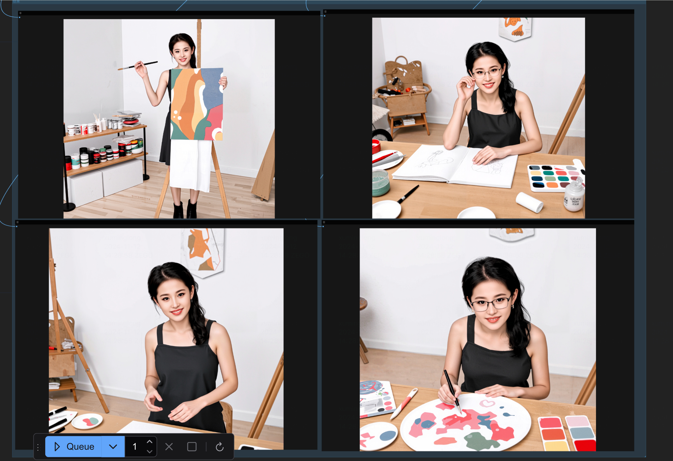 1. Utilizing Flux + Pulid + In-Context-LoRA technology, Achieve consistent output of a specified character by referencing a facial photo.